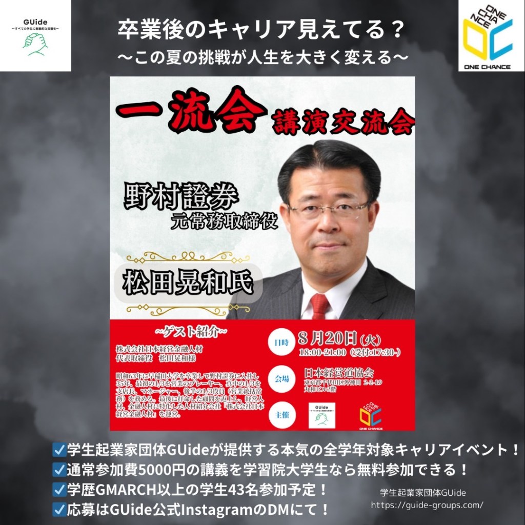 ゲストとして松田晃和氏(野村證券元常務取締役)を招いた豪華キャリアイベントを実施!