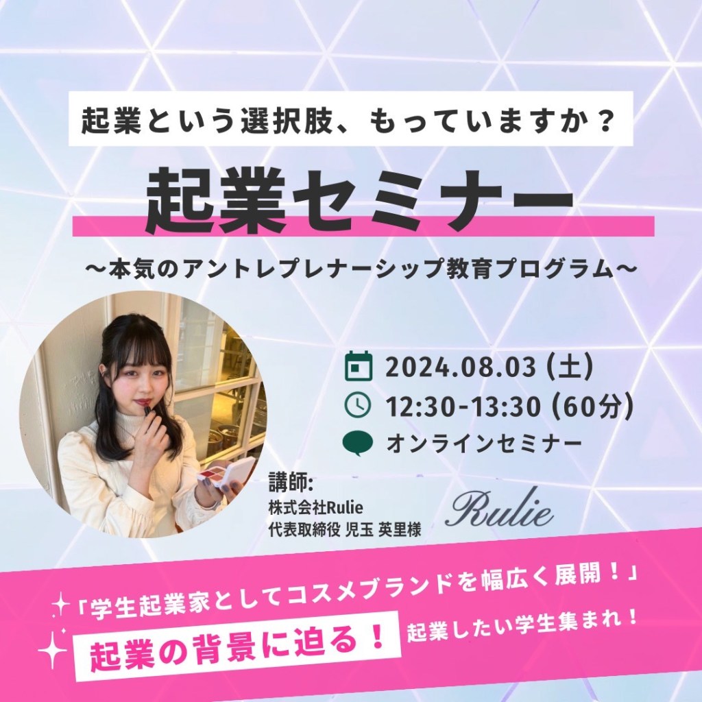 この度、株式会社Rulie代表取締役 児玉英里様をお招きした本気の起業セミナーを行います!