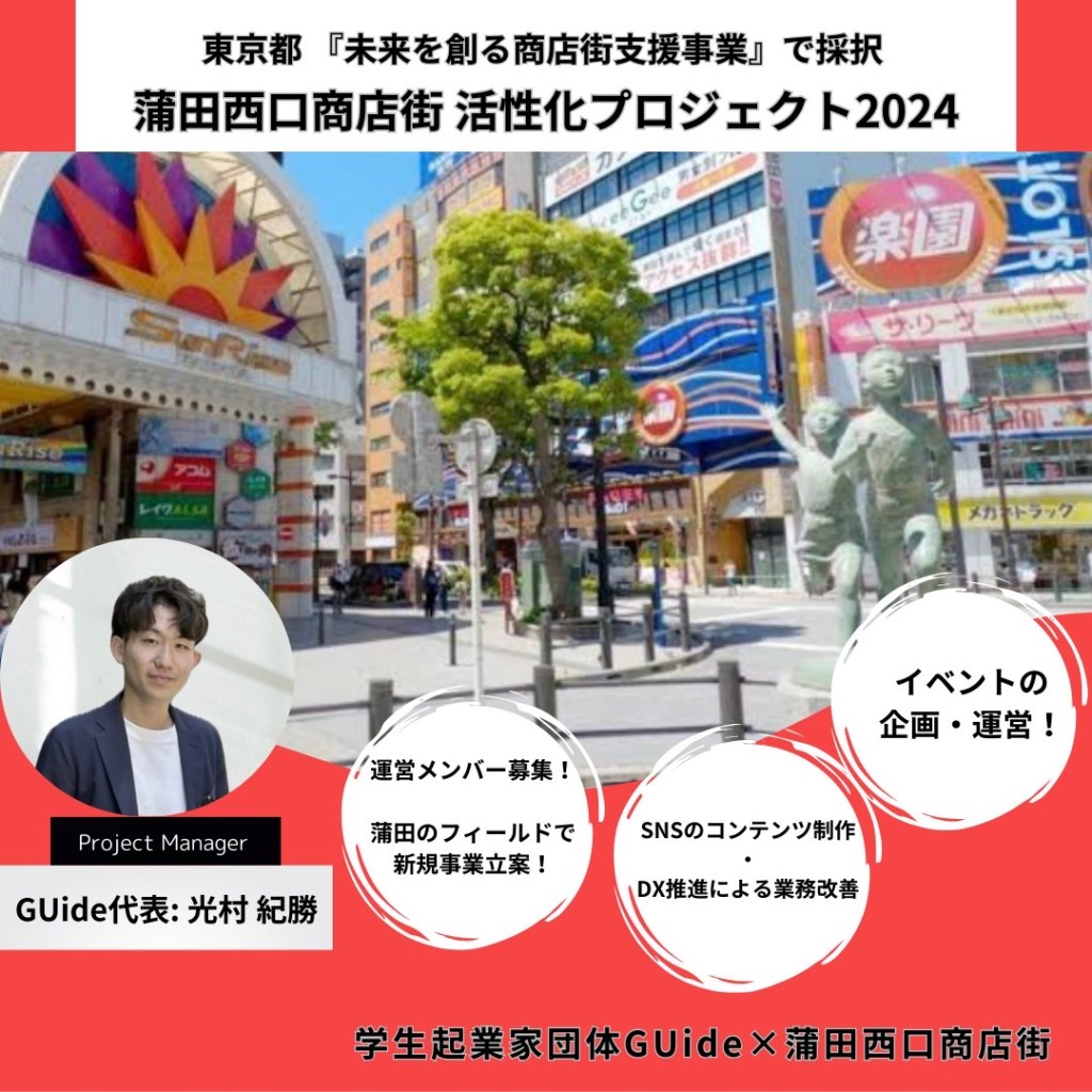 学生起業家団体GUideが蒲田西口商店街と共同で行う地域活性化プロジェクトに参加してくださる学生様を募集しております!